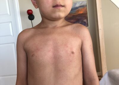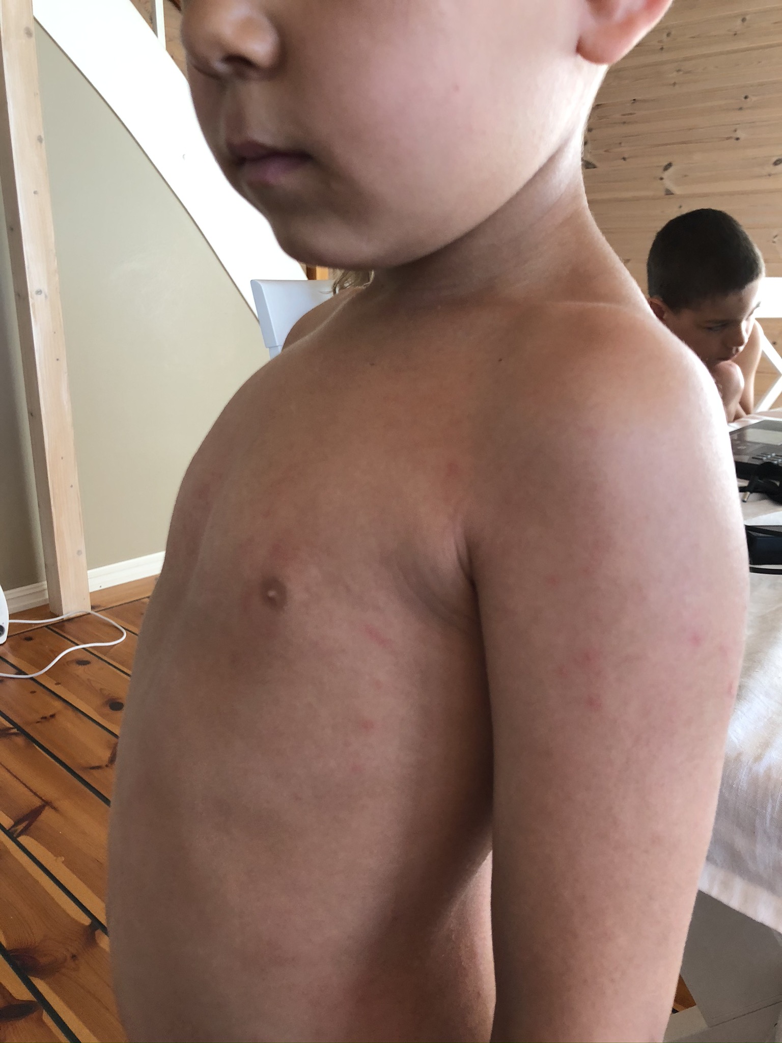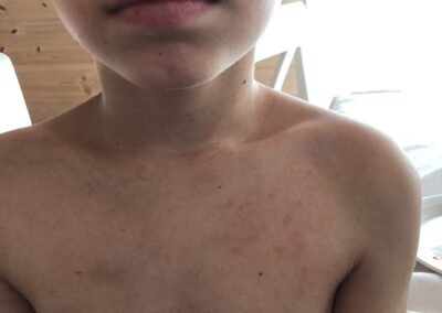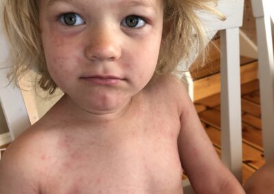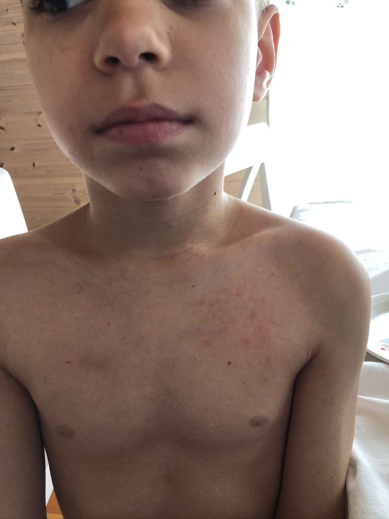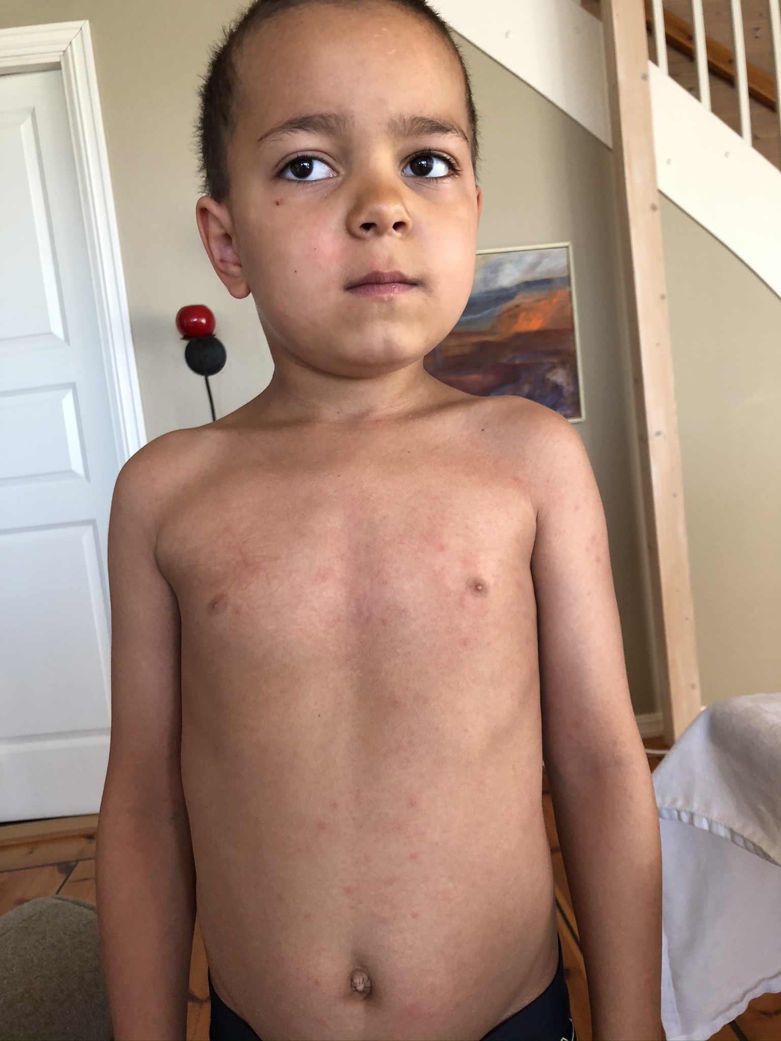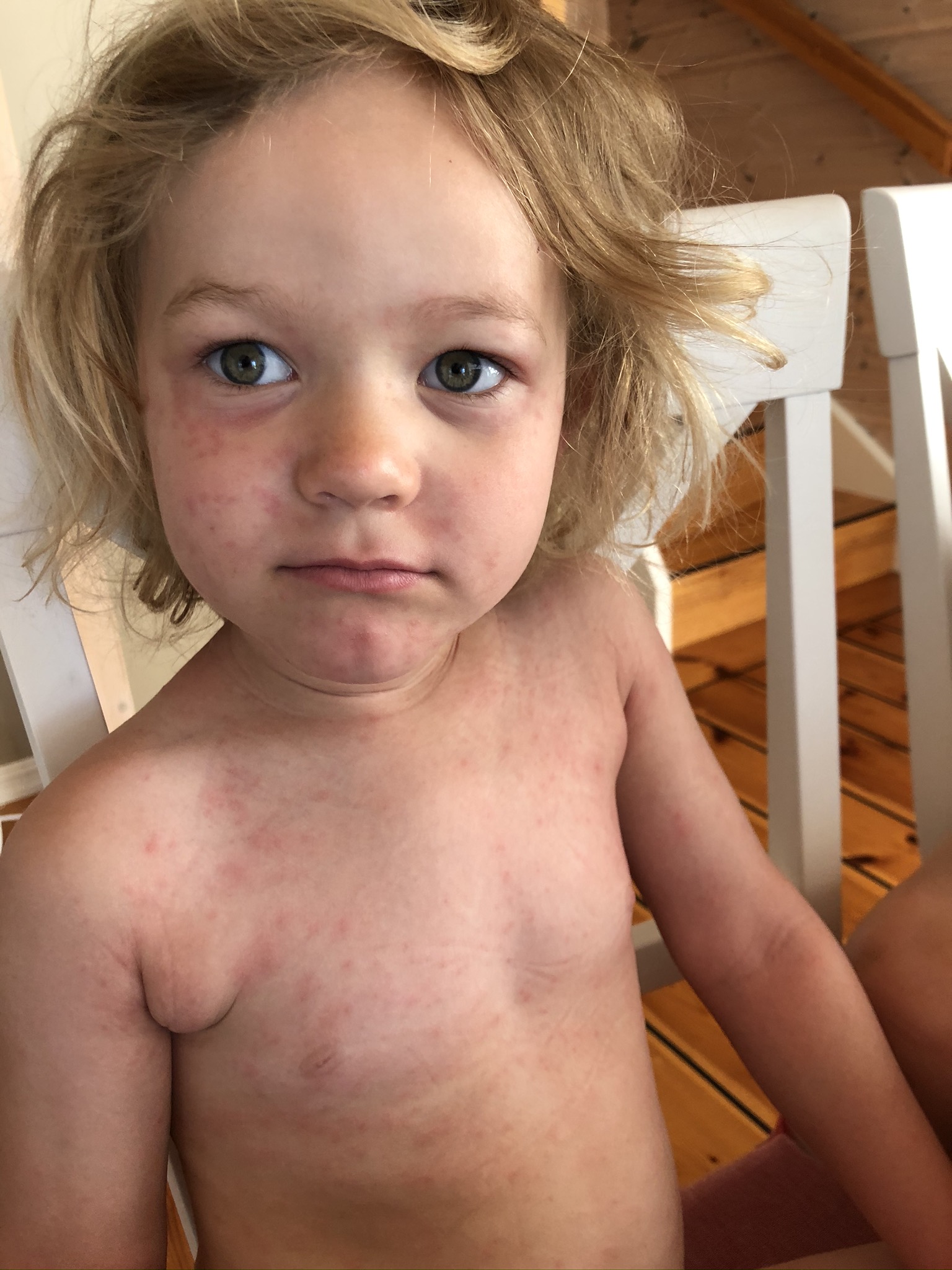 The school in Canary island, the Norwegian school of course got some pictures of my kids after we rented a cabin with a pool. All my kids got a heavy reaction from it and i documented it of course. I told the school that my kids will not be in a pool with chlorine before i took a test in the hospital. As everyone can see is that they made this point a heavy point in their child service case against me. I then wonder when people see the pictures, would you have sent your kids in a pool with chlorine again after this? We did not only suffer then, but the towels we used was bad the next week as well, even though i washed it really well. So when we put the towel that we had used in our face after we showered we got some reactions as well. Mainly with problems in the airways. So yeah they suffer more than just being in the pool.
